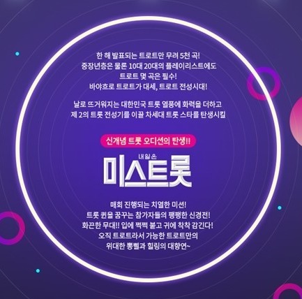 한 해 발표되는 트로트만 무려 5천 곡이라고 하구요, 노래방에 가면 트로트를 부르는 분들이 많은데, 정작 TV에서는 아이돌 위주의 프로그램만 나오면서 아쉬워하는 분들이 많았을 텐데요.