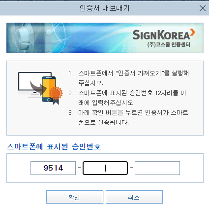 승인번호를 입력한 다음 모바일의 인증서 가져오기 버튼을 클릭해주면 www.kiwoom.com/smart에서의 작업을 마치게 됩니다.
